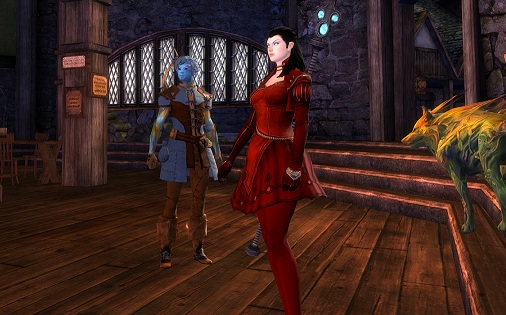 Syren Darkmoon, Norn Ranger Kendra Shadowshaper, with Ruff and me in a tavern in