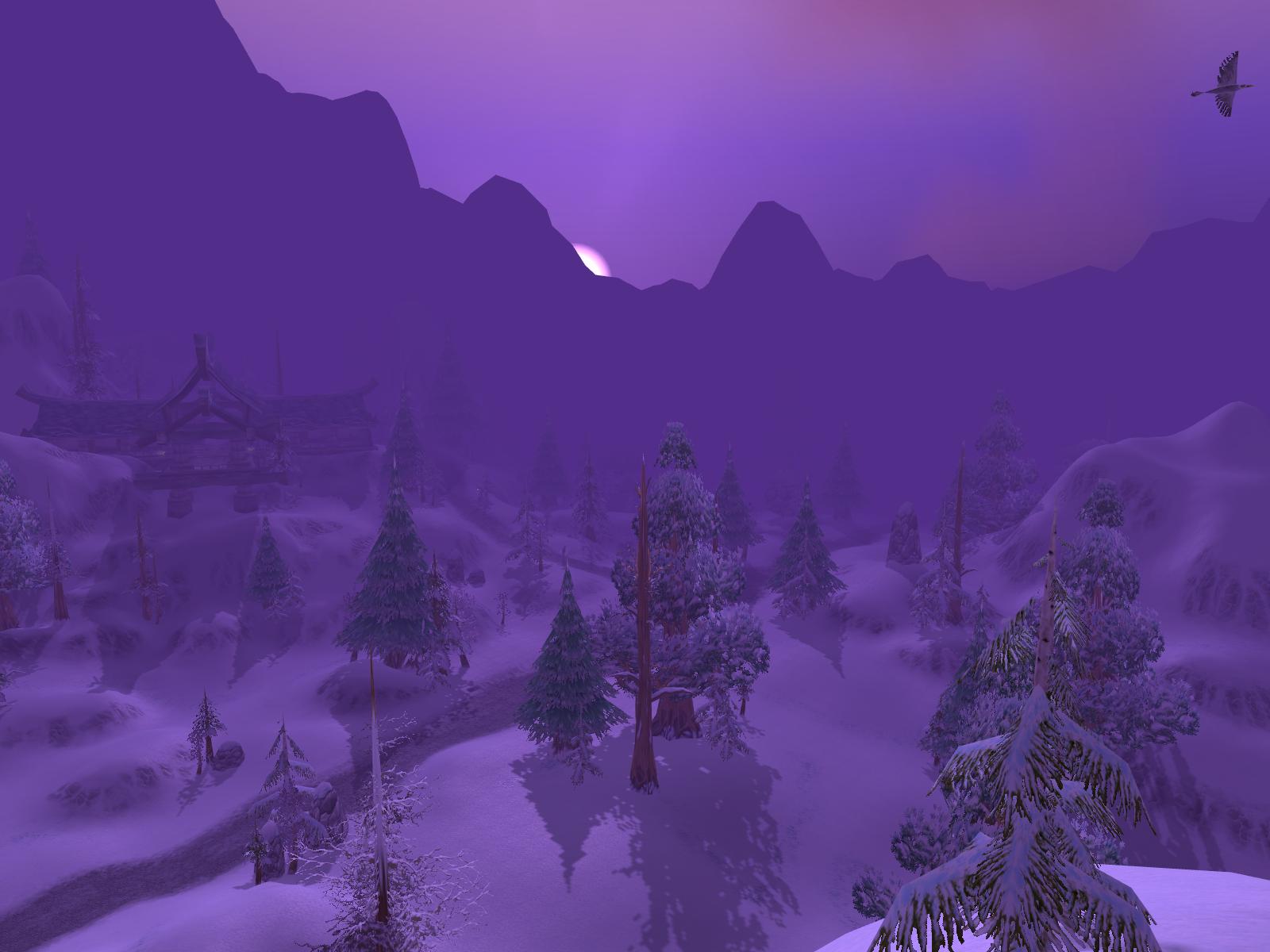 Land of Eternal Winter. Looking west toward Starfall Village and the setting sun.