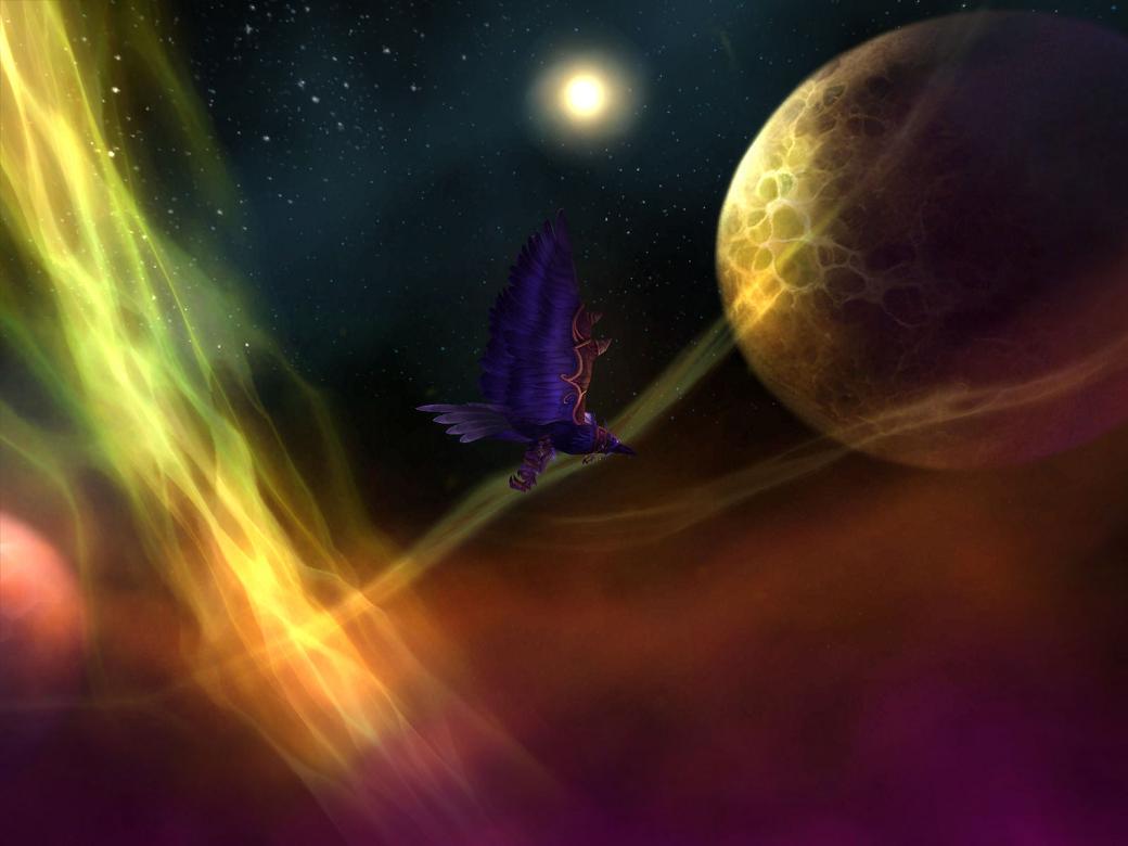 Above the treetops, on the way back to Shattrath.