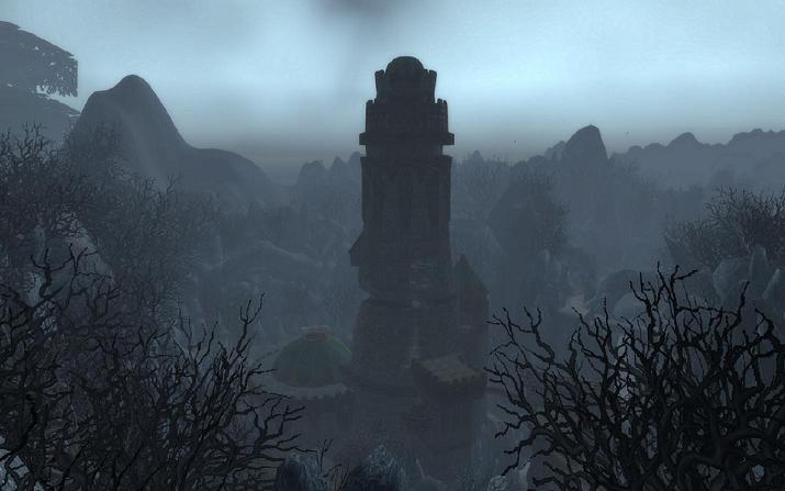 Karazhan -- aerial approach from Blasted Lands.