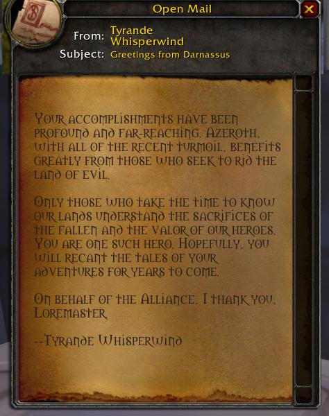 02 August 2009, after gaining the "Loremaster" achievement: